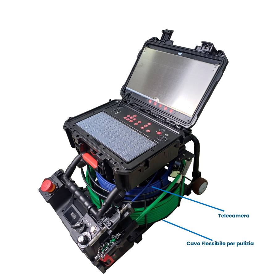 Camfresa è una macchina innovativa a spinta che unisce in un unico impianto la videoispezione e la pulizia di tubazioni, semplificando e velocizzando gli interventi di manutenzione. Grazie alla telecamera integrata e alla testa fresante, permette di ispezionare e pulire incrostazioni, detriti o ostacoli senza dover utilizzare due apparecchiature separate.