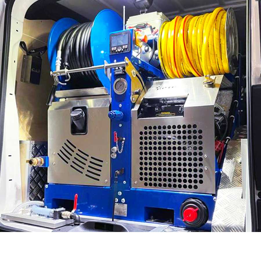 Canal Jet portatile disegnato per allestimento su furgoni. Tasche per la movimentazione e sollevamento con carrello elevatore.