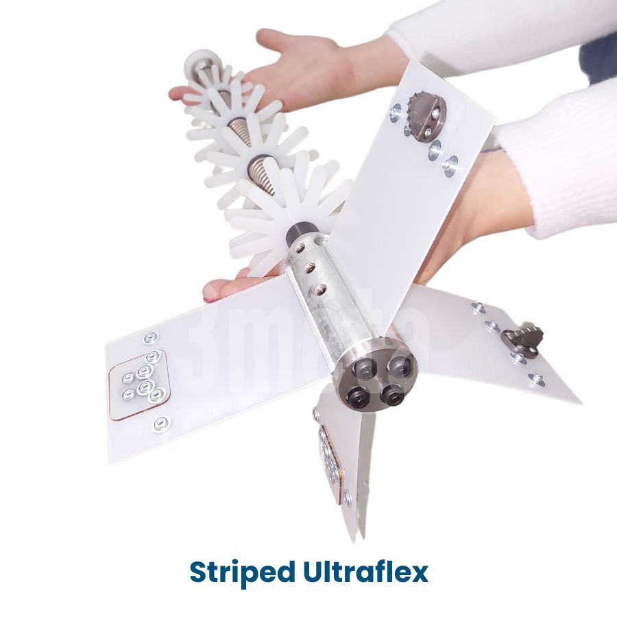 La fresa striped è dotata di lastre flessibili con denti in acciaio temprato fissati nella porzione estrema di ogni lastra. Il suo movimento rotatorio assicura un preciso taglio circonferenziale. Le lastre permettono inoltre di mantenere la posizione centrale nello scarico.