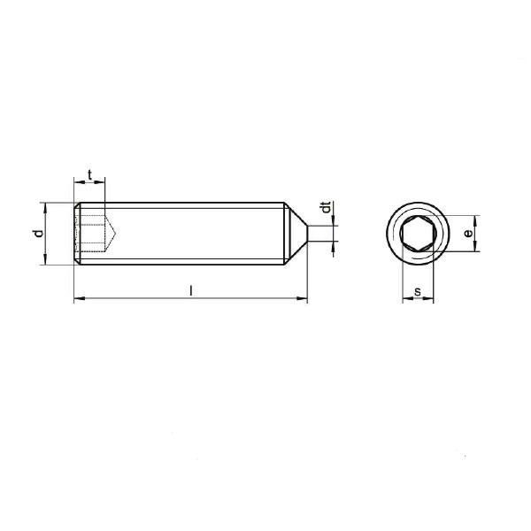 Grani, viti senza testa con esagono incassato a punta conica. ISO 4027 (ex UNI 5927 DIN 914). Classe 45H