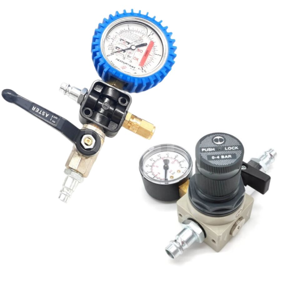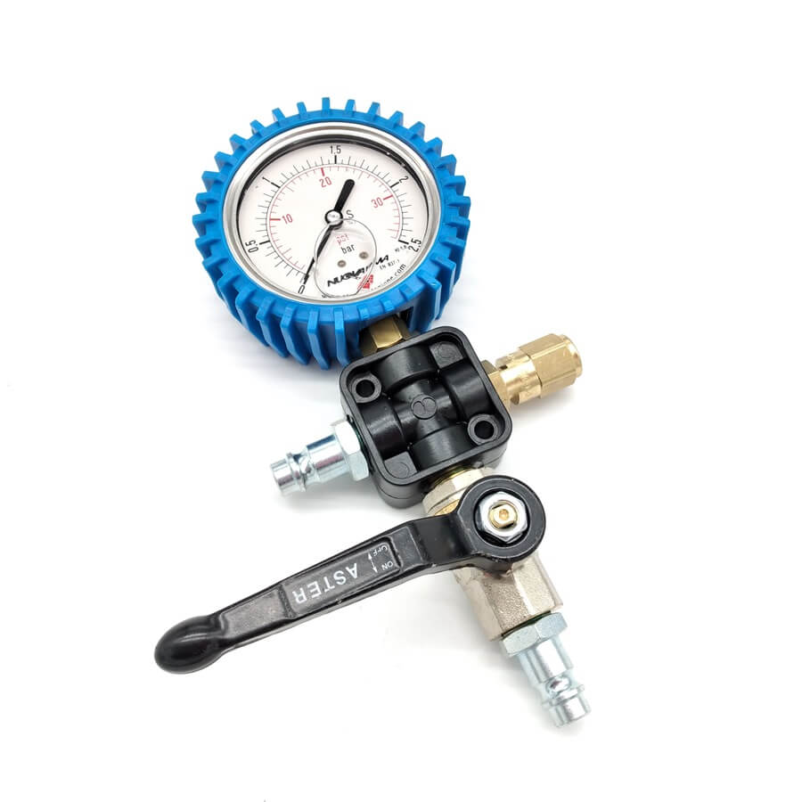 Collegamento manometro con innesto rapido al tubo di gonfiaggio e al compressore per il gonfiaggio di palloni otturatori e packer