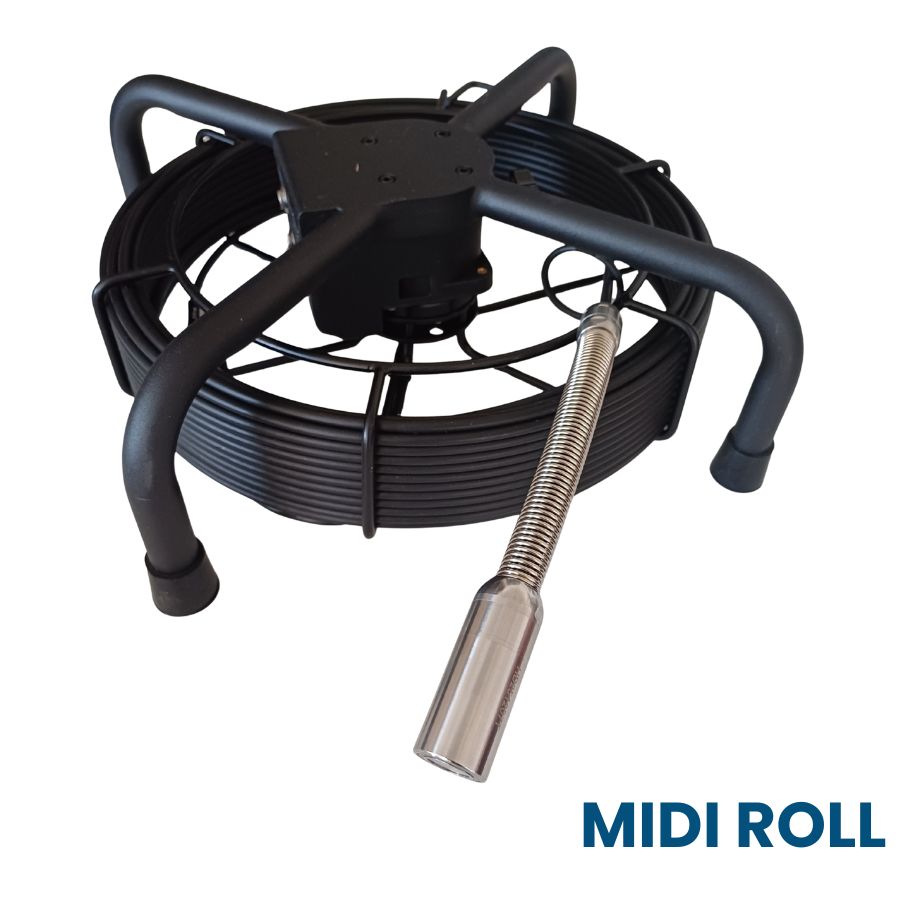 Naspo completo di 30mt di cavo dn 5,2mm per telecamera dn 23mm Comprensivo di testa fissa da 23 mm e centratori