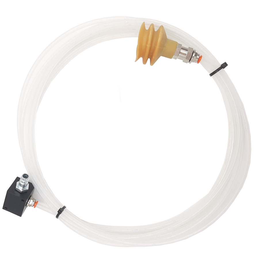 E’ sufficiente collegare l’attacco rapido al compressore e la ventosa alla calza per asportare il deposito di aria all’interno del liner.
