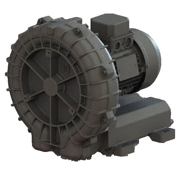 Soffiante a canale laterale realizzata in lega di alluminio per ottenere una macchina leggera e performante.