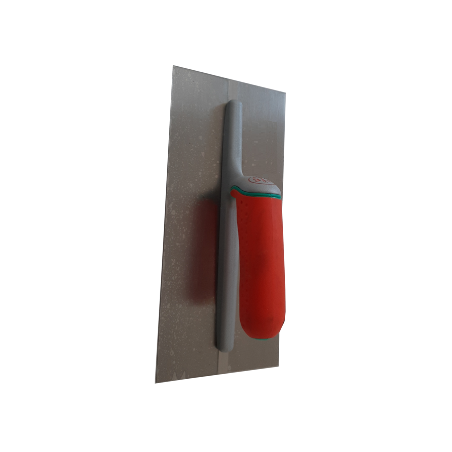 Frattazzo professionale in metallo con lama rettangolare.