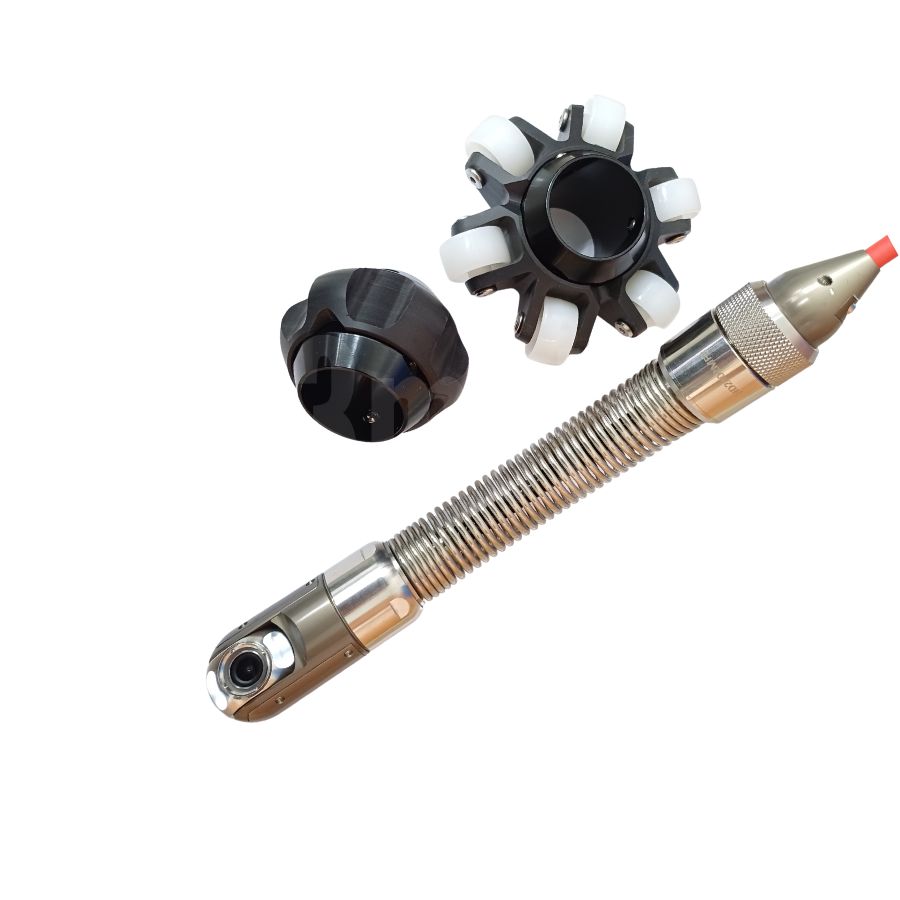 In dotazione 2 centratori  (dn 65mm, dn105mm) per mantenere la centralità della testa all’interno della tubazione da ispezionare